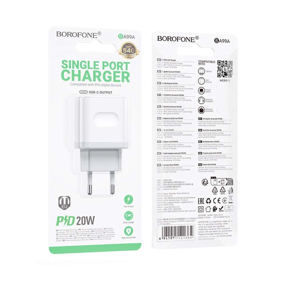 Väggladdare USB-C PD 20W Snabbladdare från Borofone. Ladda din mobil, surfplatta, hörlurar eller andra enheter med Borofone USB-C 20W Snabbladdare. Stöd för upp till 20W snabbladdning – från 0 till 50 % på 30 minuter. Anslut med en kompatibel USB-C laddkabel som passar dina behov.